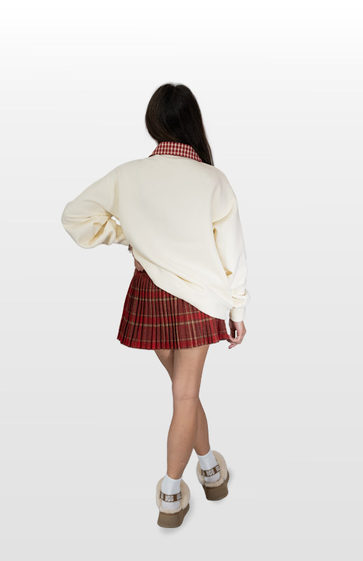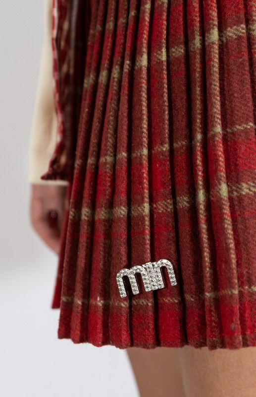 Gonna plissettata a fantasia scozzese con spilla removibile e chiusura con cerniera laterale