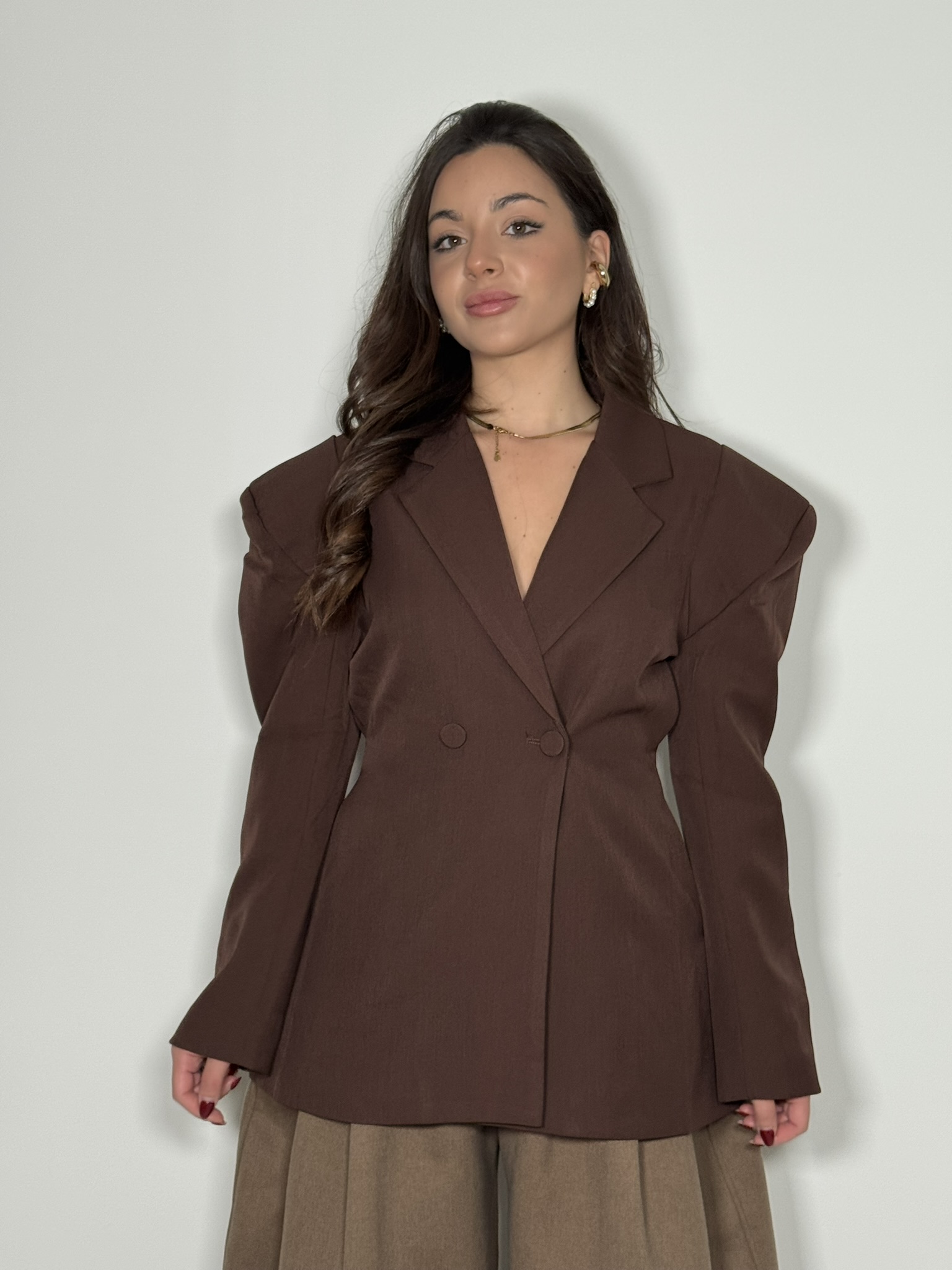 Giacca strutturata doppio petto con spalline imbottite.